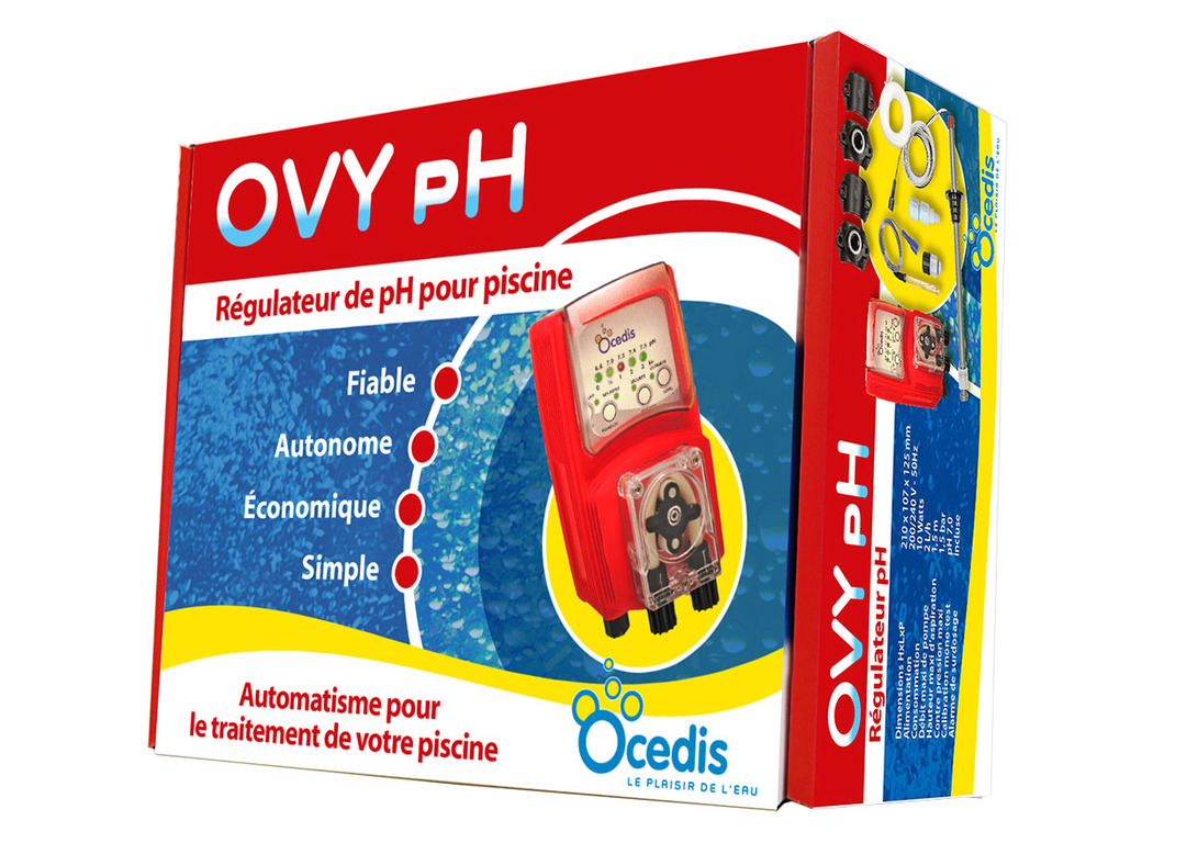 Livré avec sonde PH ou RX, porte-sonde, collier de prise en charge, solution tampon, la durée de la garantie est de 3 ans. - Le régulateur OVY’PH se compose d’une pompe doseuse péristaltique au débit de 1,5L/h. Il est équipé d’une sécurité contre le sur-dosage qui simplifie la surviellance de la piscine. La régulation OVY’PH est livrée complète et prête à installer. La durée de la garantie est de 2 ans.