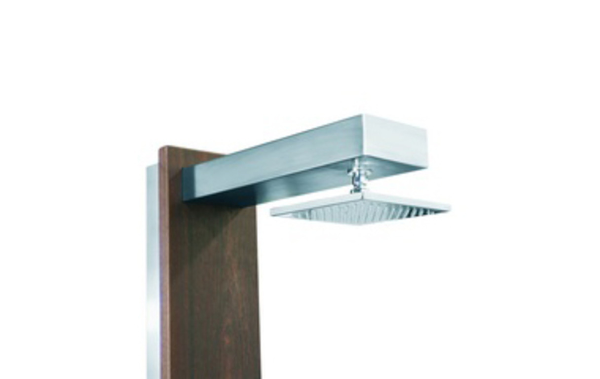 En option, le plateau bois IPÉ et inox AISI 316 viennent compléter cette gamme de douche.