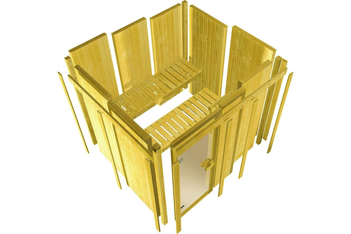 Sa grande longueur de 2,10m permet aux utilisateurs de ce sauna de s’allonger confortablement sur les deux banquettes. Le pan coupé permet une intégration plus facile dans la pièce de votre maison choisie. Les parois sont structurées de 68mm d’épaisseur avec 42mm de laine minérale. Le four de 9kw, surdimensionné, le rend performant et permet une montée de température rapide. Le protège poêle, la couronne de spot extérieure, la lampe intérieure et le kit comprenant un sceau, une louche bois, un sablier... sont autant d’accessoires livrés avec le sauna.